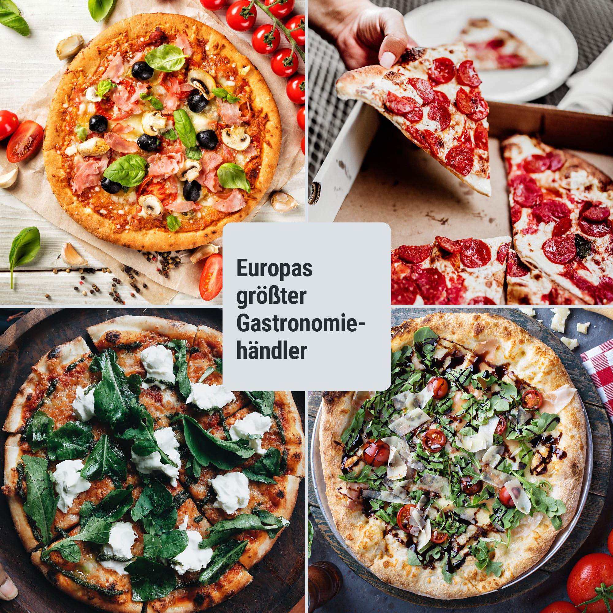 Detalles: GGM Gastro | TPOGL3 | Horno de gas para pizza Outdoor – para pizzas de 30 cm – con bolsa de transporte | Ventajas del producto | Tiempo de calentamiento rápido | : gracias a su diseño eficiente, el horno para pizza alcanza la temperatura de funcionamiento óptima en solo 15-20 minutos. Varios usos | : Además de pizzas, se pueden preparar baguettes, tartas flambée, pan, verduras, filetes y mucho más. Diseño compacto y portátil: el horno de pizza es ligero y fácil de transportar, perfecto para usar en el jardín, en el balcón o en el camping. Tiempo de cocción reducido: gracias a las altas temperaturas, es posible cocinar pizzas hasta un crujiente perfecto en tan solo 60 segundos. Versión | Horno de gas para pizza de exterior | Color: negro/plata | Para pizzas con un diámetro de | 300 mm | calidad | exterior de la carcasa: acero inoxidable con recubrimiento en polvo | carcasa interior: acero inoxidable | patas de aluminio con patas de plástico | conexión | Potencia: 4,65 kW | apto para gas propano | Dimensiones exteriores L x P x A: 646mm / 25.x 314 mm x 400 mm | Suministro | 1 piedra para pizza | Advertencia | El horno de pizza no debe exponerse permanentemente a la intemperie. Directrices | Fabricado siguiendo las directrices de higiene y seguridad. Marcado CE como prueba de conformidad con las normas reglamentarias de la UE | Material que cumple con las normas alimentarias europeas | GGM Gastro