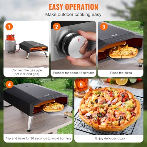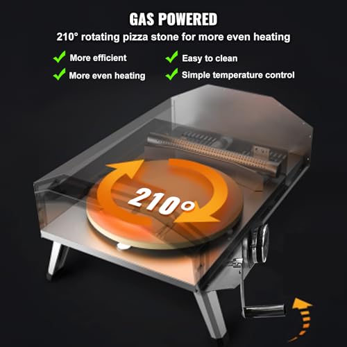 - Horneado eficiente y uniforme: precalienta en 20 minutos y hornea en 90 segundos, con temperaturas que alcanzan hasta 1000 °F/540 ℃. La piedra para pizza giratoria de 210° garantiza un horneado uniforme sin la necesidad de retirar la pizza con frecuencia para girarla, lo que hace que el proceso de horneado sea más uniforme. Ideal para hornear pizzas de 13 pulgadas y cocinar diversas carnes, pescados y verduras.